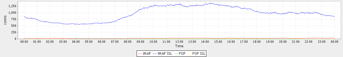 avg(IMAP) = 21.88 avg(IMAP SSL) = 963.62 avg(POP) = 0.01 avg(POP SSL) = 3.07