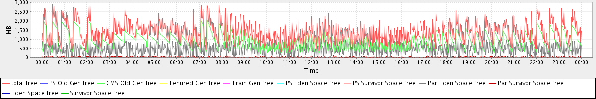 avg(total free) = 1417.15 avg(PS Old Gen free) = 0.00 avg(CMS Old Gen free) = 901.58 avg(Tenured Gen free) = 0.00 avg(Train Gen free) = 0.00 avg(PS Eden Space free) = 0.00 avg(PS Survivor Space free) = 0.00 avg(Par Eden Space free) = 487.94 avg(Par Survivor Space free) = 27.64 avg(Eden Space free) = 0.00 avg(Survivor Space free) = 0.00