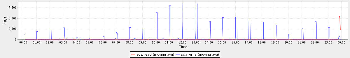 avg(sda read) = 23.04 avg(sda write) = 474.48