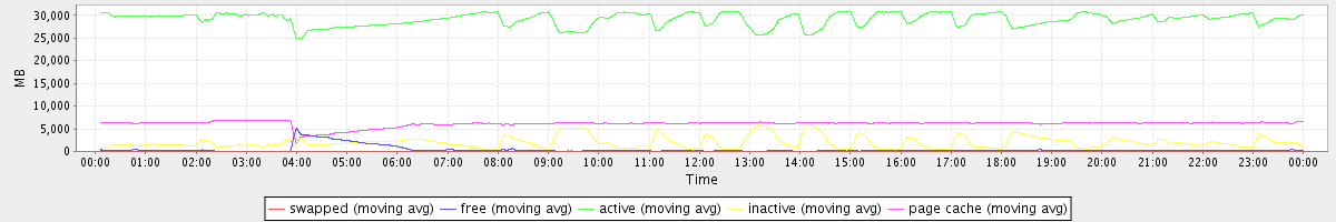 avg(swapped) = 0.25 avg(free) = 377.31 avg(active) = 29147.63 avg(inactive) = 1978.02 avg(page cache) = 6120.63