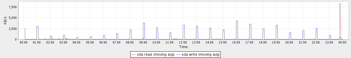 avg(sda2 read) = 0.08 avg(sda2 write) = 7.39