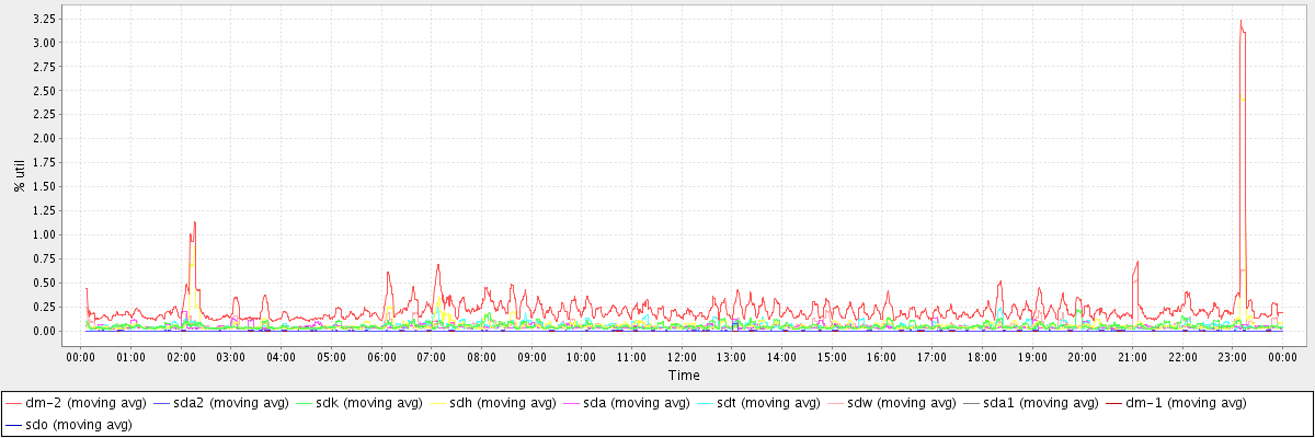 avg(dm-2) = 0.23 avg(sda2) = 0.00 avg(sdk) = 0.05 avg(sdh) = 0.07 avg(sda) = 0.04 avg(sdt) = 0.05 avg(sdw) = 0.06 avg(sda1) = 0.04 avg(dm-1) = 0.00 avg(sdo) = 0.00