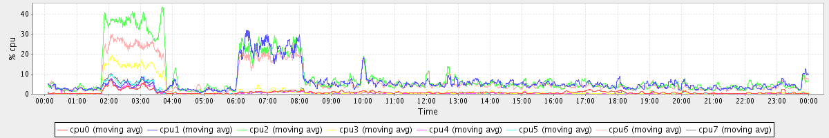 avg(cpu0) = 1.05 avg(cpu1) = 0.21 avg(cpu2) = 0.27 avg(cpu3) = 0.19 avg(cpu4) = 0.12 avg(cpu5) = 0.15 avg(cpu6) = 0.18 avg(cpu7) = 0.14