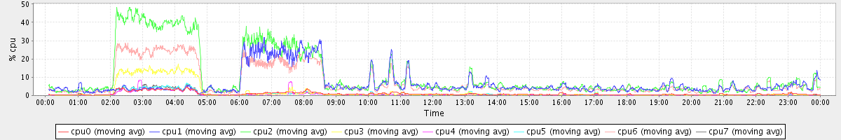 avg(cpu0) = 1.11 avg(cpu1) = 0.13 avg(cpu2) = 0.18 avg(cpu3) = 0.09 avg(cpu4) = 0.06 avg(cpu5) = 0.08 avg(cpu6) = 0.11 avg(cpu7) = 0.07