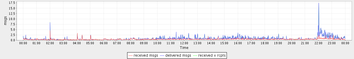 avg(received msgs) = 0.46 avg(delivered msgs) = 0.76 avg(received x rcpts) = 0.77
