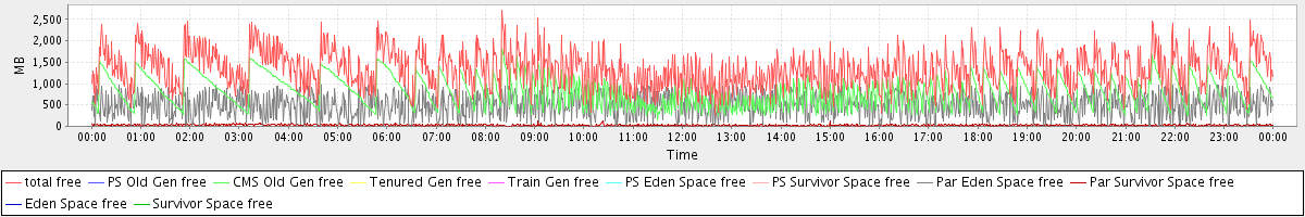 avg(total free) = 1340.75 avg(PS Old Gen free) = 0.00 avg(CMS Old Gen free) = 813.54 avg(Tenured Gen free) = 0.00 avg(Train Gen free) = 0.00 avg(PS Eden Space free) = 0.00 avg(PS Survivor Space free) = 0.00 avg(Par Eden Space free) = 499.67 avg(Par Survivor Space free) = 27.54 avg(Eden Space free) = 0.00 avg(Survivor Space free) = 0.00