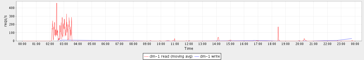 avg(dm-1 read) = 386.41 avg(dm-1 write) = 0.21