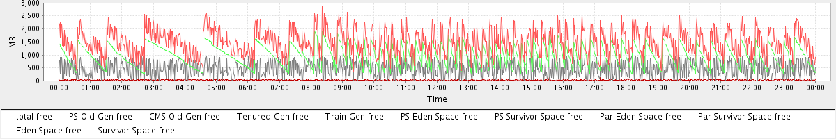 avg(total free) = 1479.32 avg(PS Old Gen free) = 0.00 avg(CMS Old Gen free) = 971.12 avg(Tenured Gen free) = 0.00 avg(Train Gen free) = 0.00 avg(PS Eden Space free) = 0.00 avg(PS Survivor Space free) = 0.00 avg(Par Eden Space free) = 476.00 avg(Par Survivor Space free) = 32.20 avg(Eden Space free) = 0.00 avg(Survivor Space free) = 0.00