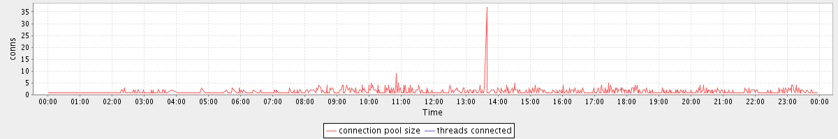 avg(connection pool size) = 0.95 avg(threads connected) = 0.00
