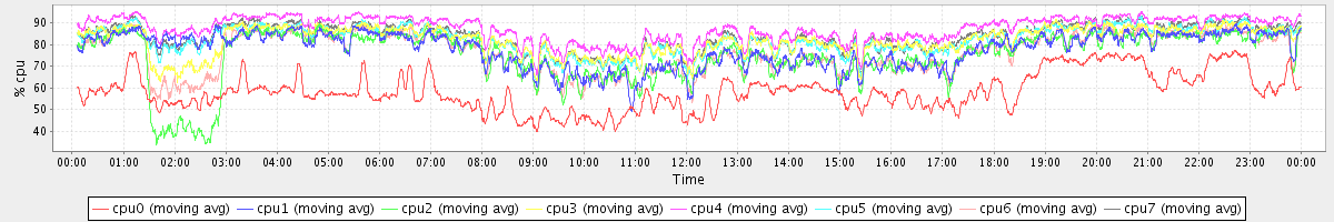 avg(cpu0) = 1.09 avg(cpu1) = 0.25 avg(cpu2) = 0.30 avg(cpu3) = 0.24 avg(cpu4) = 0.15 avg(cpu5) = 0.21 avg(cpu6) = 0.24 avg(cpu7) = 0.18