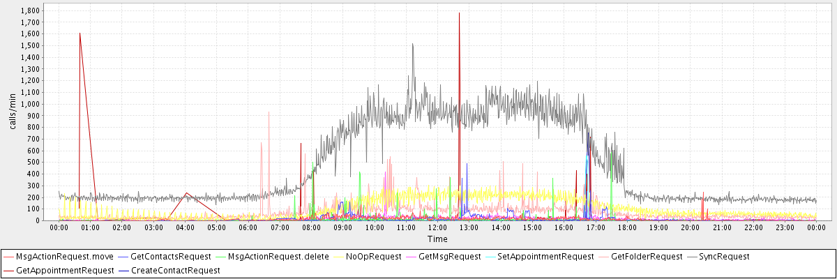 max(MsgActionRequest.move) = 247.00 max(GetContactsRequest) = 488.00 max(MsgActionRequest.delete) = 588.00 max(NoOpRequest) = 303.00 max(GetMsgRequest) = 416.00 max(SetAppointmentRequest) = 558.00 max(GetFolderRequest) = 934.00 max(SyncRequest) = 1519.00 max(GetAppointmentRequest) = 1778.00 max(CreateContactRequest) = 752.00