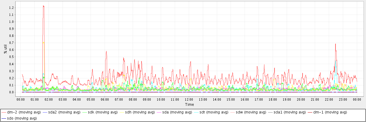avg(dm-2) = 0.20 avg(sda2) = 0.00 avg(sdk) = 0.05 avg(sdh) = 0.05 avg(sda) = 0.04 avg(sdt) = 0.05 avg(sdw) = 0.05 avg(sda1) = 0.04 avg(dm-1) = 0.00 avg(sdo) = 0.00