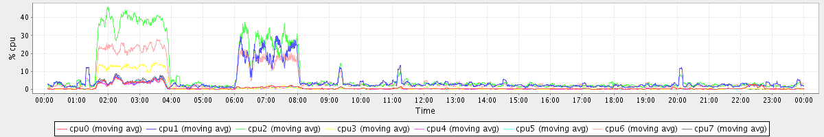 avg(cpu0) = 1.60 avg(cpu1) = 1.74 avg(cpu2) = 2.03 avg(cpu3) = 1.66 avg(cpu4) = 1.22 avg(cpu5) = 1.43 avg(cpu6) = 1.64 avg(cpu7) = 1.43