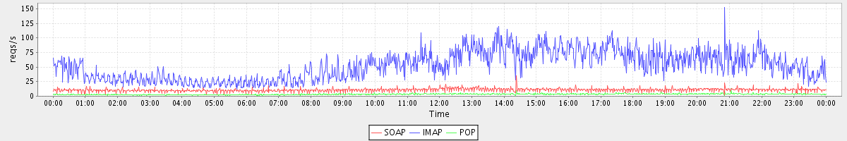 Host zm04.stanford.edu: Mailboxd: Request Rate by Client Protocol
