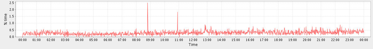 avg(user) = 12.11 avg(sys) = 1.08 avg(idle) = 84.47 avg(iowait) = 2.08 avg(nice) = 0.00 avg(irq) = 0.01 avg(softirq) = 0.25