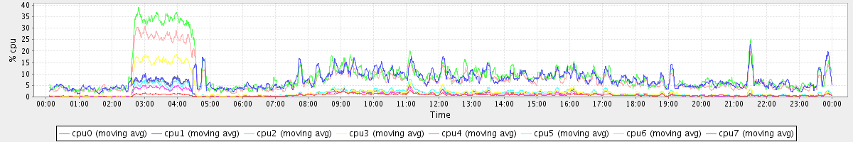 avg(cpu0) = 0.33 avg(cpu1) = 0.06 avg(cpu2) = 0.09 avg(cpu3) = 0.01 avg(cpu4) = 0.00 avg(cpu5) = 0.00 avg(cpu6) = 0.07 avg(cpu7) = 0.00
