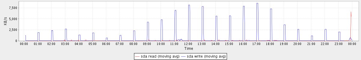 avg(sda1 read) = 19.93 avg(sda1 write) = 503.55