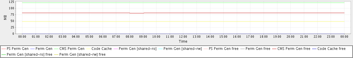 avg(PS Perm Gen) = 0.00 avg(Perm Gen) = 0.00 avg(CMS Perm Gen) = 121.63 avg(Code Cache) = 47.50 avg(Perm Gen [shared-ro]) = 0.00 avg(Perm Gen [shared-rw]) = 0.00 avg(PS Perm Gen free) = 0.00 avg(Perm Gen free) = 0.00 avg(CMS Perm Gen free) = 81.35 avg(Code Cache free) = 0.43 avg(Perm Gen [shared-ro] free) = 0.00 avg(Perm Gen [shared-rw] free) = 0.00