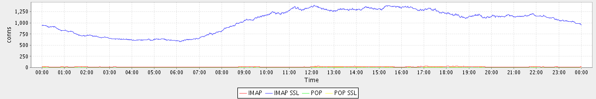 avg(IMAP) = 15.00 avg(IMAP SSL) = 1035.59 avg(POP) = 0.52 avg(POP SSL) = 3.55