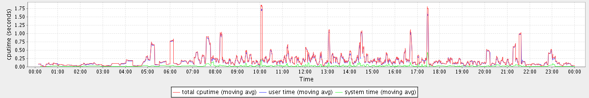 avg(total cputime) = 0.13 avg(user time) = 0.12 avg(system time) = 0.01