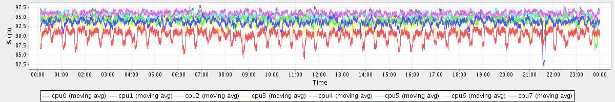 avg(cpu0) = 90.17 avg(cpu1) = 93.56 avg(cpu2) = 94.02 avg(cpu3) = 93.31 avg(cpu4) = 95.81 avg(cpu5) = 95.41 avg(cpu6) = 95.24 avg(cpu7) = 95.50