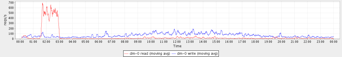 avg(dm-1 read) = 12.61 avg(dm-1 write) = 0.03
