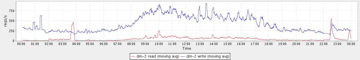 avg(dm-0 read) = 1255.13 avg(dm-0 write) = 397.66