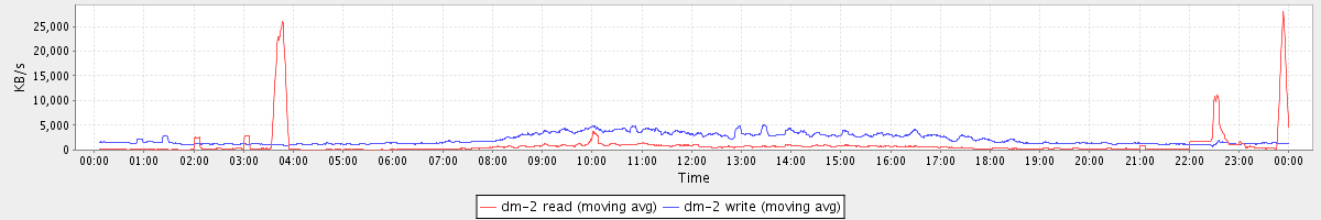 avg(dm-2 read) = 982.46 avg(dm-2 write) = 2190.42