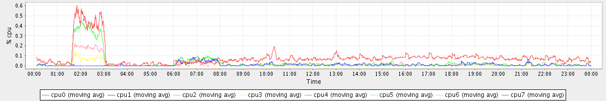 avg(cpu0) = 0.08 avg(cpu1) = 0.01 avg(cpu2) = 0.03 avg(cpu3) = 0.00 avg(cpu4) = 0.00 avg(cpu5) = 0.00 avg(cpu6) = 0.02 avg(cpu7) = 0.00