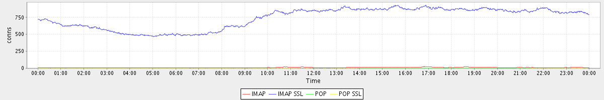 avg(IMAP) = 9.53 avg(IMAP SSL) = 742.44 avg(POP) = 0.01 avg(POP SSL) = 3.01
