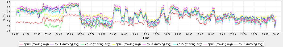 avg(cpu0) = 1.66 avg(cpu1) = 0.46 avg(cpu2) = 0.47 avg(cpu3) = 0.41 avg(cpu4) = 0.37 avg(cpu5) = 0.43 avg(cpu6) = 0.45 avg(cpu7) = 0.40