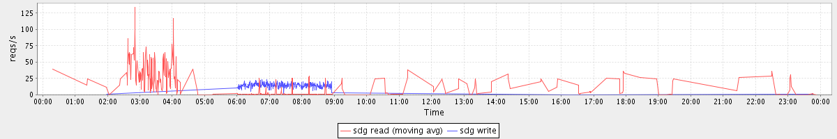 avg(sda read) = 16.53 avg(sda write) = 284.73