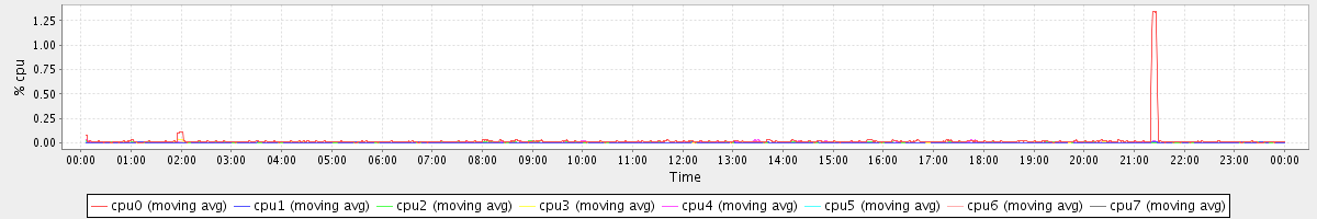 avg(cpu0) = 0.01 avg(cpu1) = 0.01 avg(cpu2) = 0.13 avg(cpu3) = 0.05 avg(cpu4) = 0.22 avg(cpu5) = 0.01 avg(cpu6) = 0.01 avg(cpu7) = 0.01