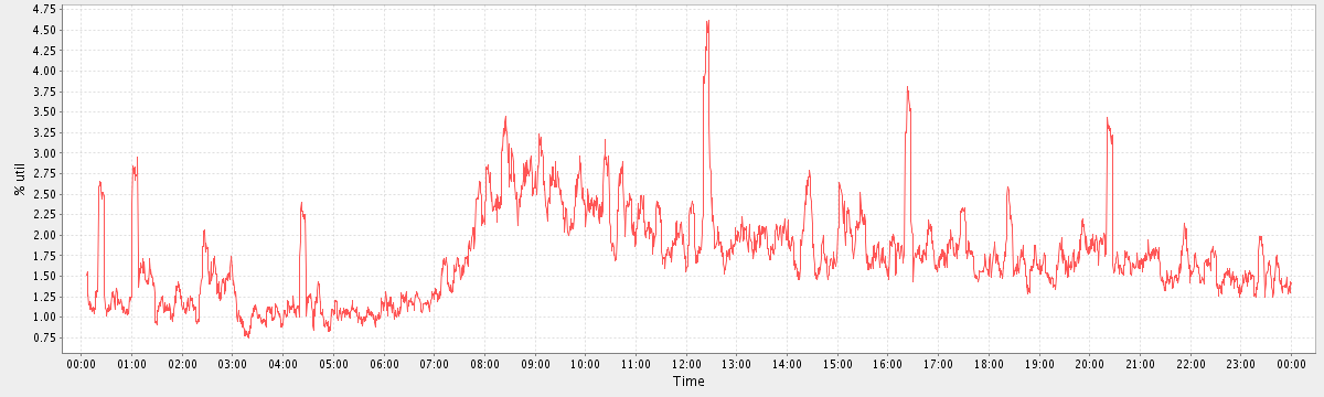 avg(user) = 4.80 avg(sys) = 0.46 avg(idle) = 94.66 avg(iowait) = 0.05 avg(nice) = 0.00 avg(irq) = 0.00 avg(softirq) = 0.00