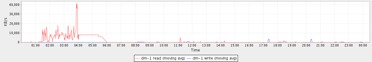 avg(dm-1 read) = 594.82 avg(dm-1 write) = 35.87