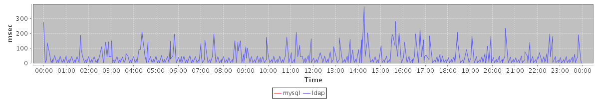 avg(mysql) = 0.20 avg(ldap) = 12.07