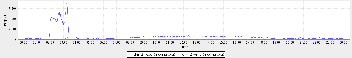 avg(dm-2 read) = 3565.57 avg(dm-2 write) = 3550.10