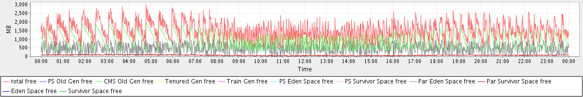 avg(total free) = 1513.03 avg(PS Old Gen free) = 0.00 avg(CMS Old Gen free) = 957.08 avg(Tenured Gen free) = 0.00 avg(Train Gen free) = 0.00 avg(PS Eden Space free) = 0.00 avg(PS Survivor Space free) = 0.00 avg(Par Eden Space free) = 485.44 avg(Par Survivor Space free) = 70.51 avg(Eden Space free) = 0.00 avg(Survivor Space free) = 0.00