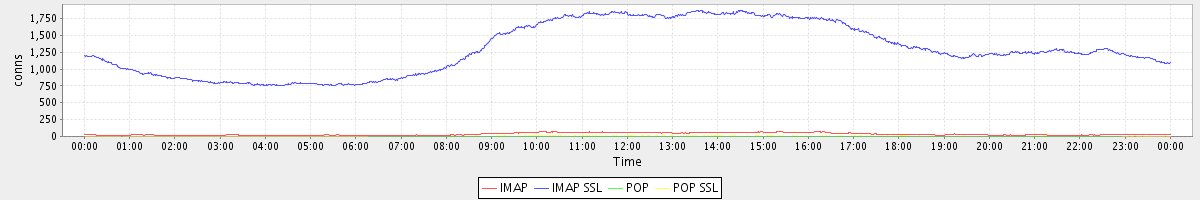 avg(IMAP) = 33.93 avg(IMAP SSL) = 1295.02 avg(POP) = 0.05 avg(POP SSL) = 3.97