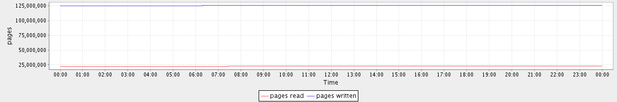 avg(pages read) = 22593719.12 avg(pages written) = 125866383.41
