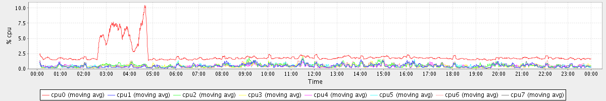avg(cpu0) = 2.12 avg(cpu1) = 0.51 avg(cpu2) = 0.53 avg(cpu3) = 0.46 avg(cpu4) = 0.43 avg(cpu5) = 0.47 avg(cpu6) = 0.51 avg(cpu7) = 0.44