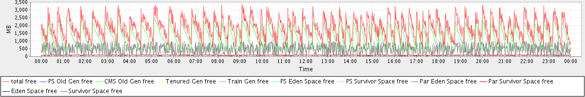 avg(total free) = 1869.57 avg(PS Old Gen free) = 0.00 avg(CMS Old Gen free) = 1295.31 avg(Tenured Gen free) = 0.00 avg(Train Gen free) = 0.00 avg(PS Eden Space free) = 0.00 avg(PS Survivor Space free) = 0.00 avg(Par Eden Space free) = 489.77 avg(Par Survivor Space free) = 84.48 avg(Eden Space free) = 0.00 avg(Survivor Space free) = 0.00