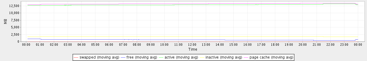 avg(swapped) = 0.22 avg(free) = 624.41 avg(active) = 12906.87 avg(inactive) = 1823.62 avg(page cache) = 13260.86