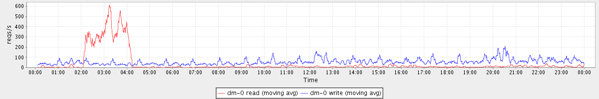 avg(dm-1 read) = 623.52 avg(dm-1 write) = 0.17