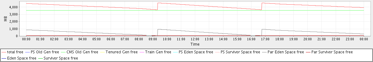 avg(total free) = 4144.54 avg(PS Old Gen free) = 0.00 avg(CMS Old Gen free) = 3532.46 avg(Tenured Gen free) = 0.00 avg(Train Gen free) = 0.00 avg(PS Eden Space free) = 0.00 avg(PS Survivor Space free) = 0.00 avg(Par Eden Space free) = 510.71 avg(Par Survivor Space free) = 101.36 avg(Eden Space free) = 0.00 avg(Survivor Space free) = 0.00