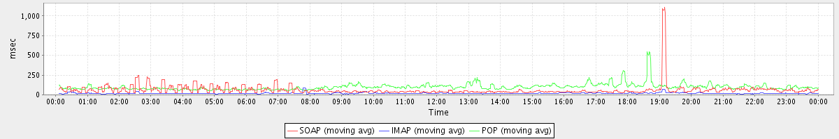 Host zm03.stanford.edu: Mailboxd: Response Time by Client Protocol