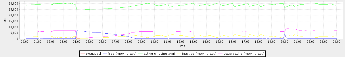 avg(swapped) = 0.00 avg(free) = 997.16 avg(active) = 28434.35 avg(inactive) = 1999.87 avg(page cache) = 5845.70