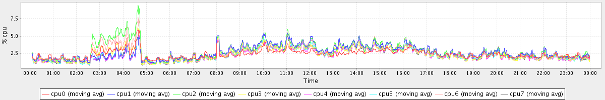 avg(cpu0) = 0.23 avg(cpu1) = 0.06 avg(cpu2) = 0.09 avg(cpu3) = 0.01 avg(cpu4) = 0.00 avg(cpu5) = 0.00 avg(cpu6) = 0.06 avg(cpu7) = 0.00