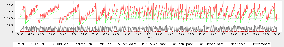 avg(total) = 2920.61 avg(PS Old Gen) = 0.00 avg(CMS Old Gen) = 2348.27 avg(Tenured Gen) = 0.00 avg(Train Gen) = 0.00 avg(PS Eden Space) = 0.00 avg(PS Survivor Space) = 0.00 avg(Par Eden Space) = 484.80 avg(Par Survivor Space) = 87.54 avg(Eden Space) = 0.00 avg(Survivor Space) = 0.00