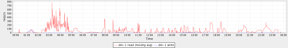 avg(dm-1 read) = 20.57 avg(dm-1 write) = 0.09